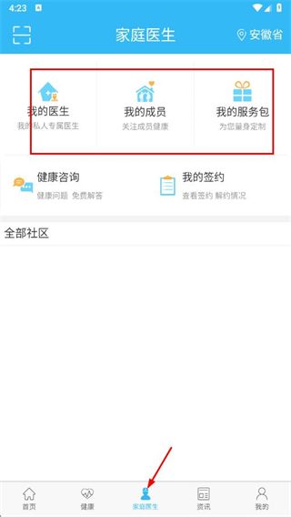 3、进入家庭医生页页面,有我的医生、我的成员、我的服务包等功能,用户可以拥有私人专属医生,关注家庭成员健康。