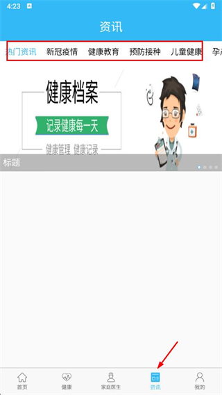 4、在资讯板块,设有热门资讯、新冠疫情、健康教育、预防接种、儿童健康等栏目,用户可以获取丰富的医疗健康知识。