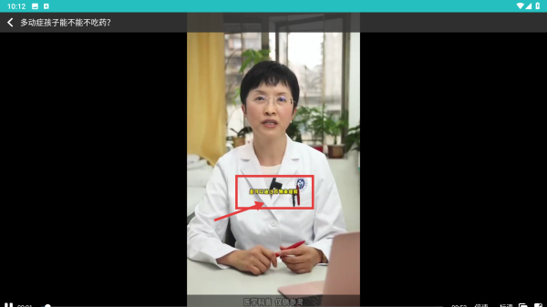4、在视频播放界面,观看由专业医生讲解的多动症用药知识,获取医疗科普信息。