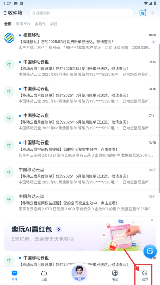 基于移动云盘功能,可安全备份邮件附件、微信文件、手机照片等多种手机资料,覆盖日常高频存储需求,保障数据安全不丢失。