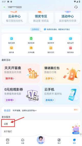 1、打开邮箱类应用,点击底部我的选项,进入个人中心页面。