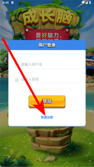 2、进入用户登录页面,点击快速注册,进入快速注册页面。