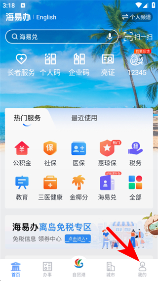 1、在海易办的首页,点击底部我的,进入个人操作的页面。