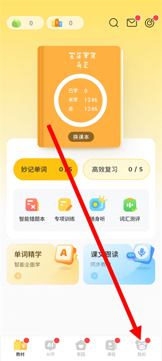 设计6种闯关玩法,以游戏化形式记词复习,完成任务可召唤学习伙伴、积累奖励,搭配情景对话场景,让学习更具趣味性。