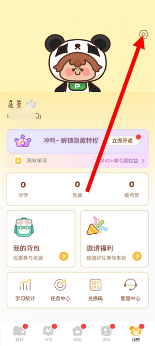 1、打开熊猫在学,点击底部我的,进入个人页面。