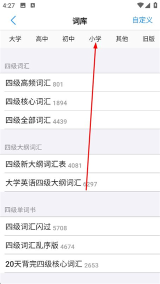 2、进入词库选择界面,点击上方分类中的需要的词汇类别。