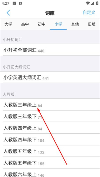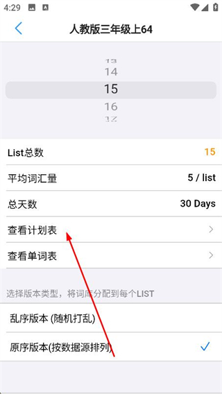 3、在展开的具体词库列表中,选择想要查看计划表的词库。
