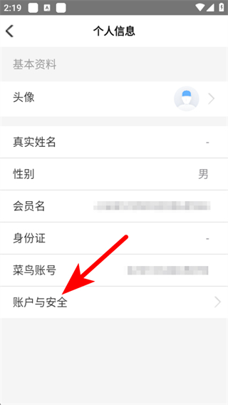 3、在个人信息的页面,点击账户与安全,进入账号与安全页面。