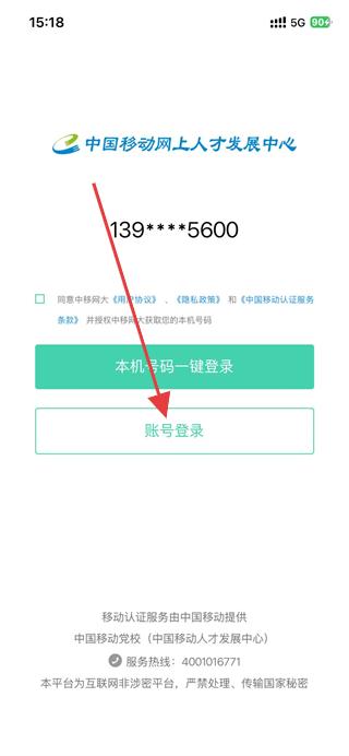 2、进入登录页面后,找到并点击下方的账号登录选项。