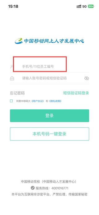 3、在账号登录页面,在输入框中输入手机号/11位员工工号。