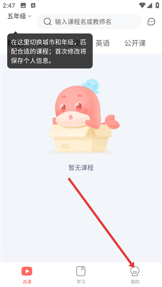 1、打开一起学网校app,点击底部导航栏最右侧我的。