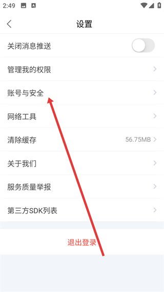 3、在设置页面中,找到并点击上方的账号与安全选项。