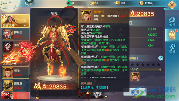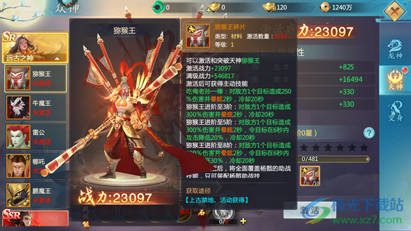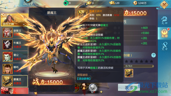 5、鹏魔王,七大圣排名第三,又叫混天大圣,技能金鹏展翅可以永久提高技能伤害与对怪物伤害。
