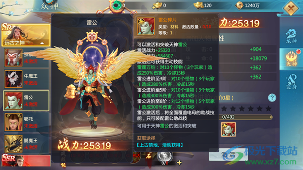 3、雷公,古代神话传说中的司雷之神,掌控着强大的雷电之力,其技能雷霆万钧可以对多名目标造成AOE伤害。