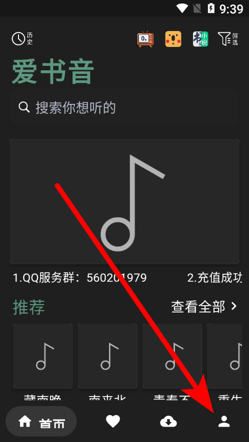 1、打开爱书音App,点击底部导航栏中“我的”图标,进入个人界面。