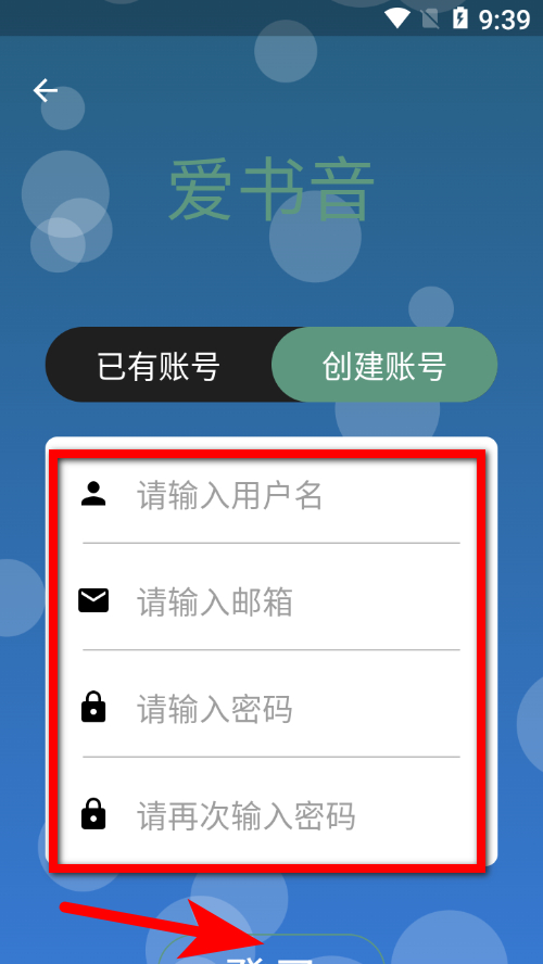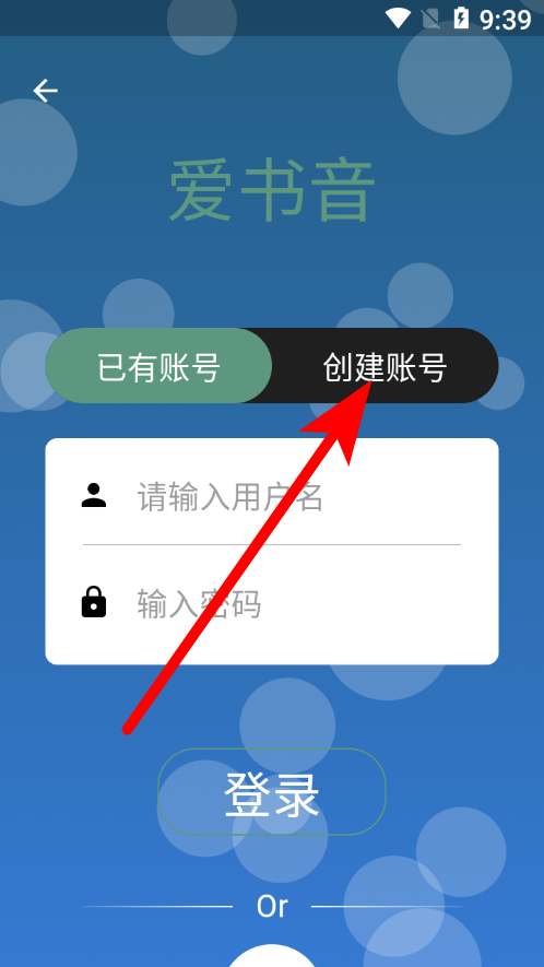 3、在登录页面,点击“创建账号”选项,切换到创建账号界面。