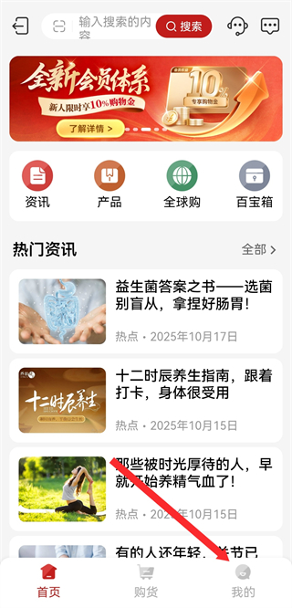 1、在无限极的首页,点击底部我的按钮,进入个人页面。