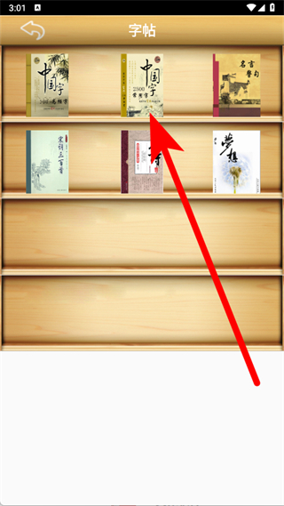 2、在字帖选择界面,点击想要练习的字帖,进入该字帖的内容页面。