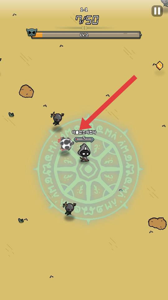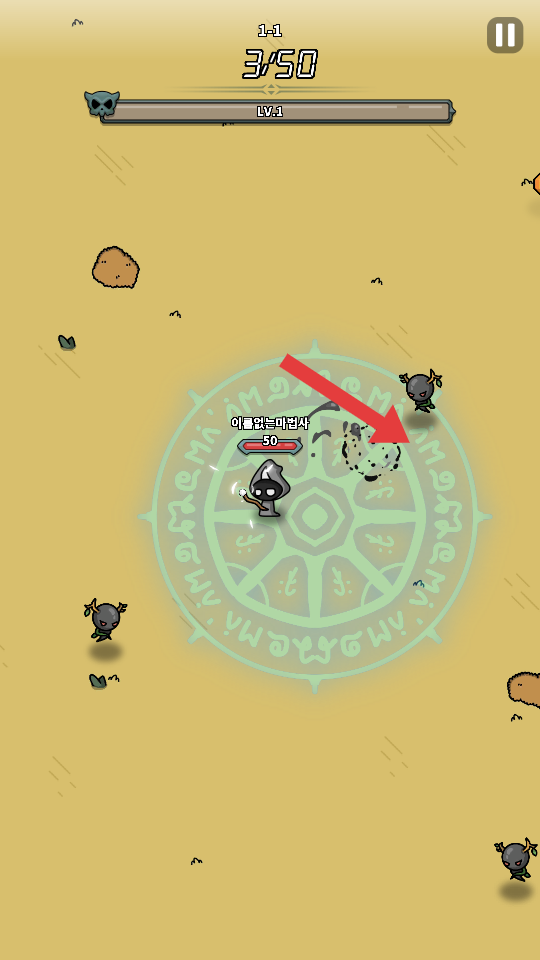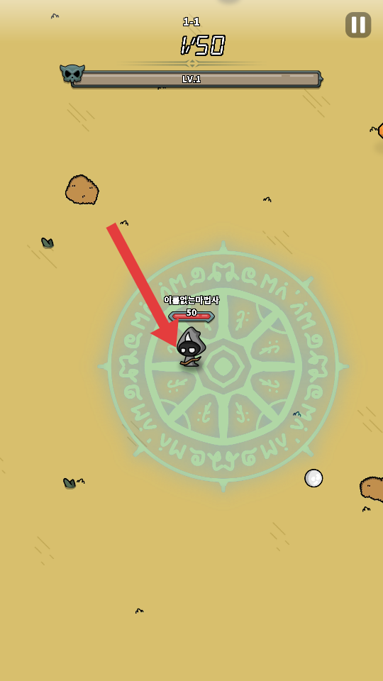 1、进入关卡1-1后,操控无名魔法师在带有符文的圆形区域熟悉初始位置,准备应对即将出现的敌人。