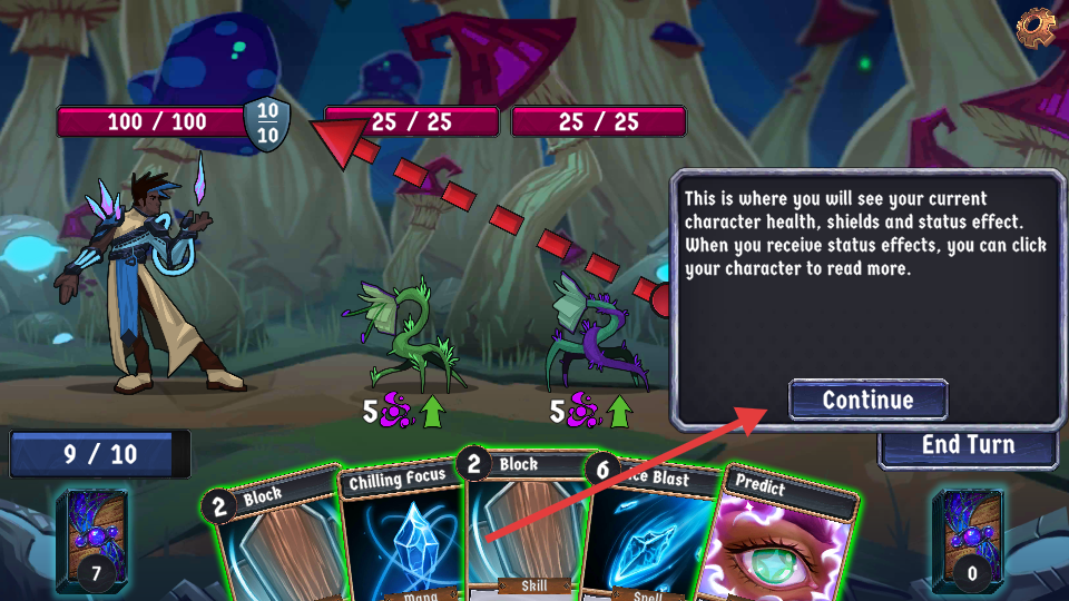 1、开局三张基础卡牌先凑合着用,揍几个小怪就能解锁骚操作卡组。
