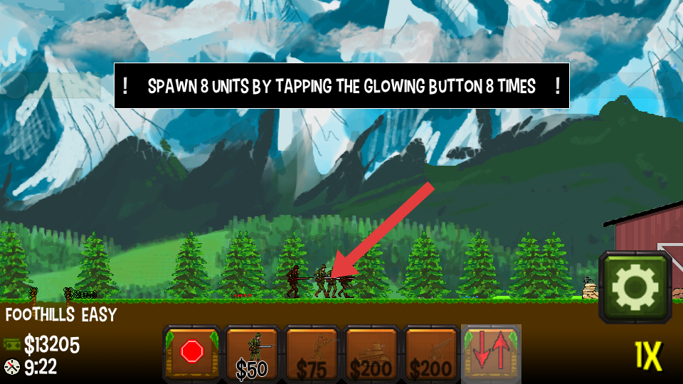 1、关卡要求召唤8个单位,点击下方对应发光按钮,每次消耗金币召唤,重复操作8次完成兵力部署。
