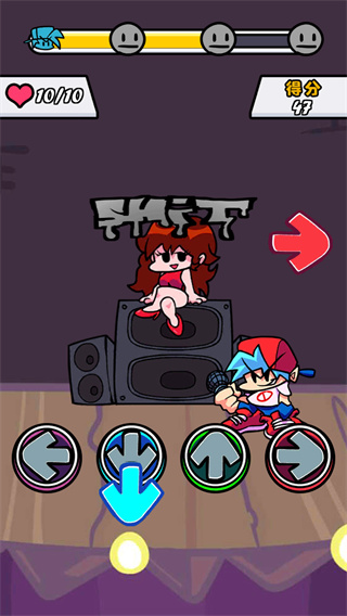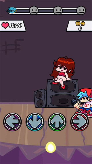 1、进入游戏后,根据屏幕上掉落的箭头,选择下方指定的位置,当箭头掉落到对应位置之后进行点击,即可掌握节奏;