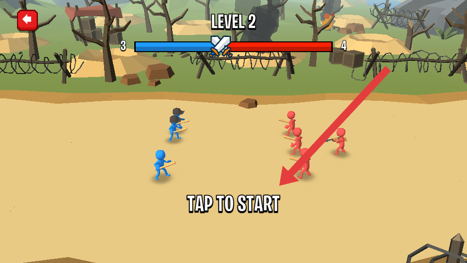 3、当界面出现TAP TO START文字提示时,点击屏幕对应区域,即可正式进入战斗环节,让蓝色部队与红色敌军展开了交锋。