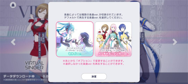 下载的同时,就是选择默认音源版本,左边为世界版本,右边为虚拟歌手版本。建议默认世界版本,个别歌再微调,比如如海底谭或者六兆年。