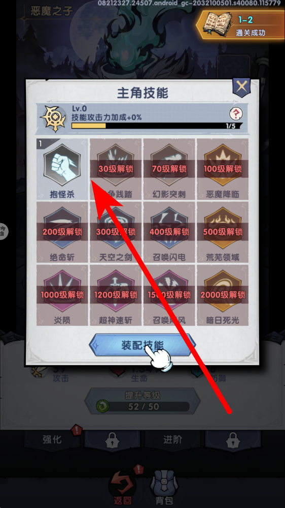 3、成功解锁了新技能后,进入主角的技能界面,点击可以装配技能,科学合理搭配技能,充分发挥技能效果,进一步提升战力。