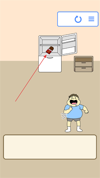 4、冰箱打开后,点击冰箱内的食物,让人物成功吃到食物,完成本关挑战。