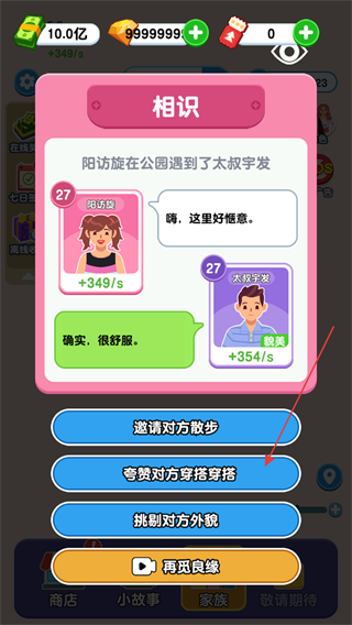 1、在相识界面,了解人物信息,点击夸赞对方穿搭穿搭增加好感度。