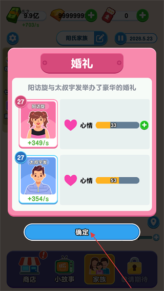3、举办婚礼后,在婚礼界面确认婚礼结果,查看双方心情等状态变化。