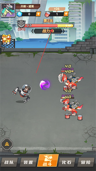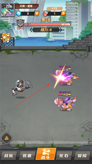 2、进入第2关战斗,点击屏幕攻击敌方恐龙,留意伤害数值,灵活操作。