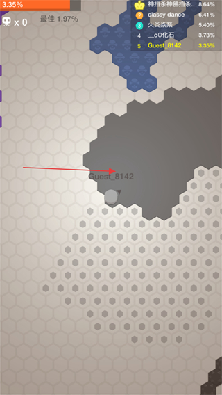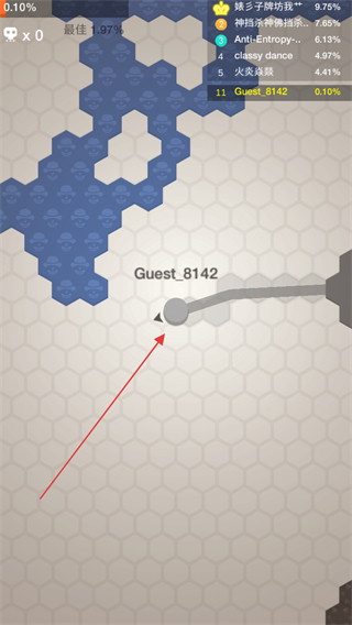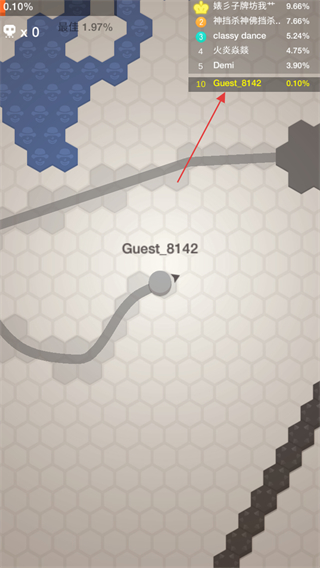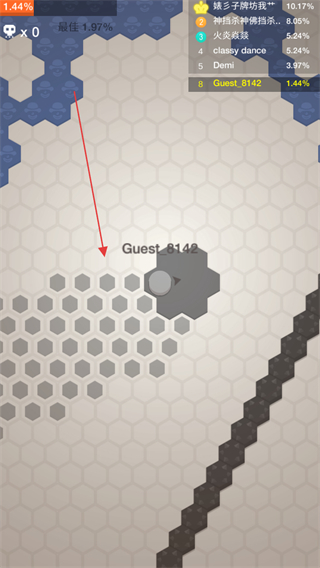 1、进入游戏,操控代表自己的Guest_8142圆圈在六边形地图上移动。