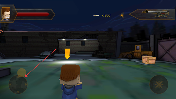 1、进入游戏,通过屏幕左下方的虚拟摇杆控制角色移动,在场景中探索。