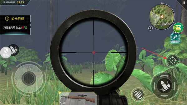 4、发现草食龙后,点击瞄准按钮,对准目标后点击射击按钮完成狩猎。