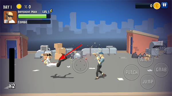 以闯关制为核心,分为白天和黑夜两种场景模式,白天敌人强度低,适合训练格斗技巧、熟练连招;黑夜敌人实力质变,部分携带棍棒、刀剑等武器,提升难度。