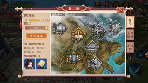 消耗12阅历后就会接取冒险任务,之后就像端游一样,会在野外刷出石碑,玩家触碰石碑就能完成任务。每次冒险增加15点冒险经验,并有几率触发事件或者挖到冒险物。