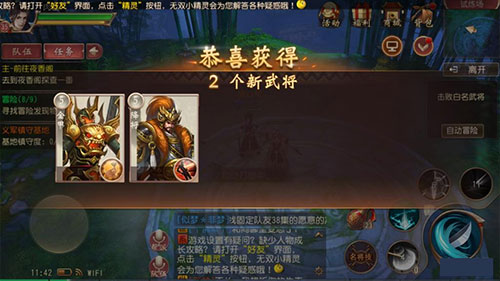 触发事件方面,其实共分为2类,第1类是会进入武将副本,击败白名武将将会获得该武将;第2类是获得藏宝图,形式就多样化了,有答题,逃跑,采集,拯救村民,击败敌人等等,总的来说很简单,过关后会给普通藏宝图一张,可交易。