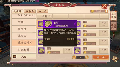 总而言之,前期普通宝图尽量自己去挖取,毕竟瑶光是升级装备的主要材料,一直都很缺,目前来看很少有玩家拿出来卖。普通玩家本来强化就不高,要是再不好好将装备进阶,那么会寸步难行。究极图要是不打算搞名将就可以卖掉,普通玩家用白金武将就足够了。
