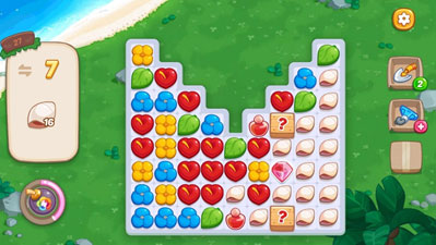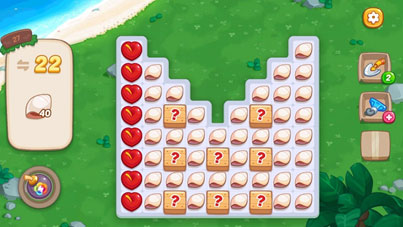 2、本关前期可以从左侧开始,一列一列的逐渐消除贝壳。在带?的箱子中,会随机出现钻石、炸弹等道具,可以多利用一下,会对通关有所帮助。