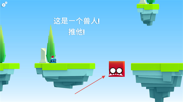 3、持续推动兽人,使其掉落平台,完成关卡目标。