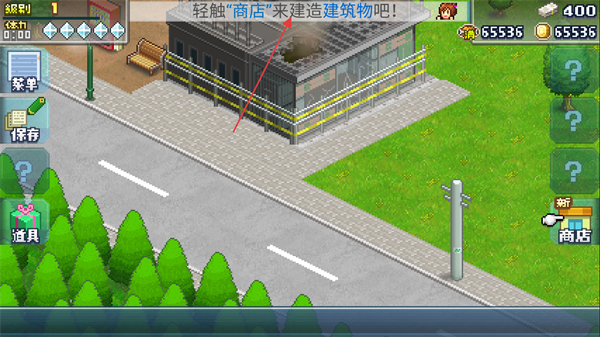1、进入游戏,按箭头指示,轻触商店,进入建造界面。
