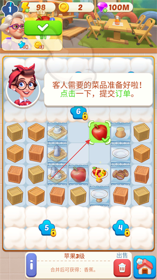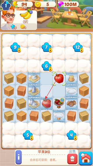 4、苹果3级,合并后可获得香蕉,按提示合并苹果来获取香蕉。