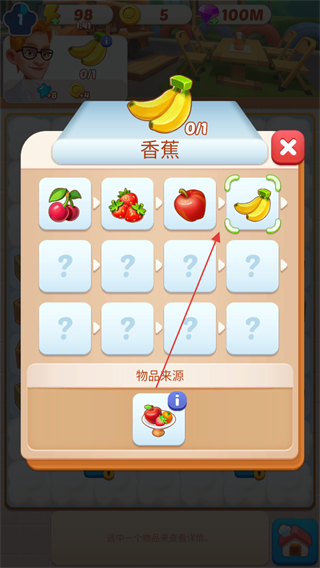 2、要获取香蕉,可从物品架中选择香蕉来进行后续操作。
