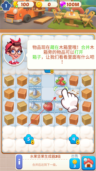 1、物品藏在木箱里,合并木箱旁的物品可打开箱子,看看里面有什么。