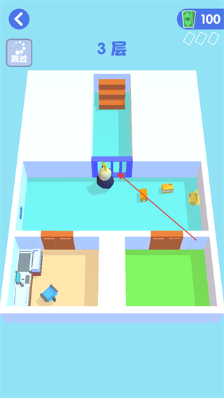 是特工就上100层内置菜单是一款主打潜行探索的魔性休闲作品,核心亮点在于内置菜单带来的玩法自定义体验,包含上百个差异化关卡,从基础房间到复杂机关场景,每关均需找到出口才能进阶,保安巡逻密度、机关类型会逐步升级,玩家需依靠精准走位躲避巡查、寻找通关钥匙,而内置菜单可实时调整参数,让不同水平的玩家都能享受闯关乐趣。