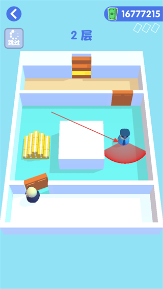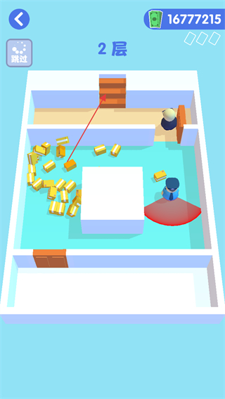 3、在2层打破金条堆,收集所有金条,完成收集任务。