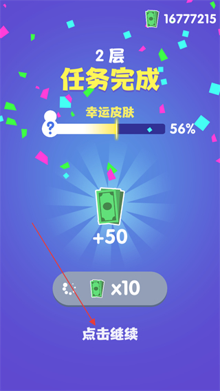4、完成任务后,点击点击继续,获取奖励并进入下一层。