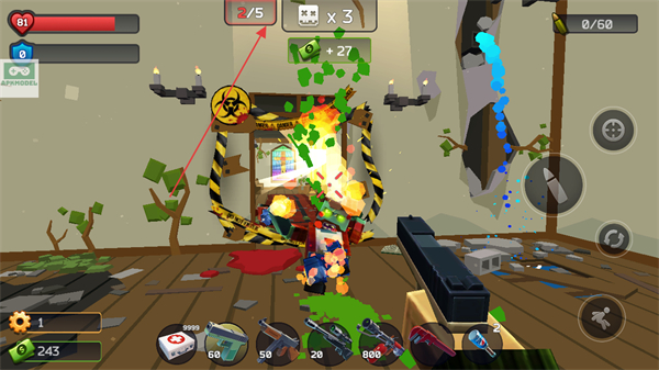 提供手枪、步枪、霰弹枪等多种武器,不同武器有专属伤害与射速,可通过购买解锁,搭配使用应对不同类型僵尸与战斗场景。